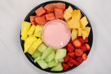 A colorful and delicious addition to any table. Includes fresh-cut mushrooms, cucumbers, assorted peppers, broccoli, cauliflower, baby carrots, celery sticks, grape tomatoes, and black olives with a fresh made dip.